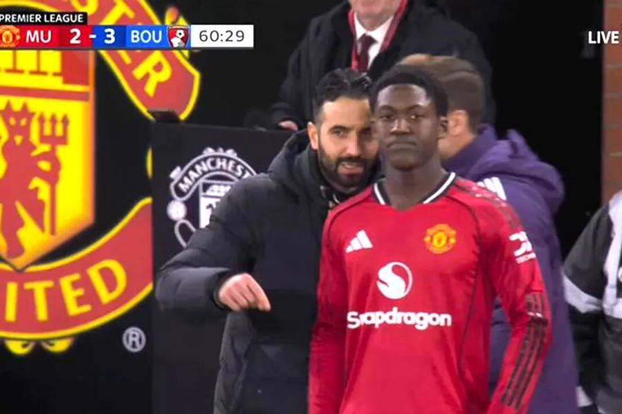 在曼联与伯恩茅斯的英超联赛中,20岁的英格兰中场科比·梅诺的哥哥乔丹·梅诺-黑姆斯受到关注。他在场边穿上「给科比自由」(FREE KOBBIE MAINOO)的黑色T恤,向主教练鲁本·阿莫林施压。这让红魔拥趸想起了许多黑暗回忆,卢克·肖、拉什福德和加纳乔的兄弟,过去都有过类似的行为。